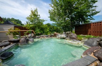 乳白色のいおう泉離れ湯百八歩。木漏れ陽に憩うおしゃれなホテル。名称蔵王四季のホテル所在地山形県山形市蔵王温泉1272連絡…