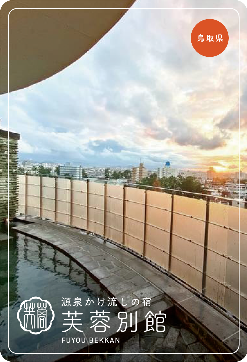 鳥取県米子市の源泉かけ流しの宿『芙蓉別館』は、上階の展望浴場から、日本海や米子の街並みを眺めつつ、朝と夜で異なる湯船を堪能することができます。