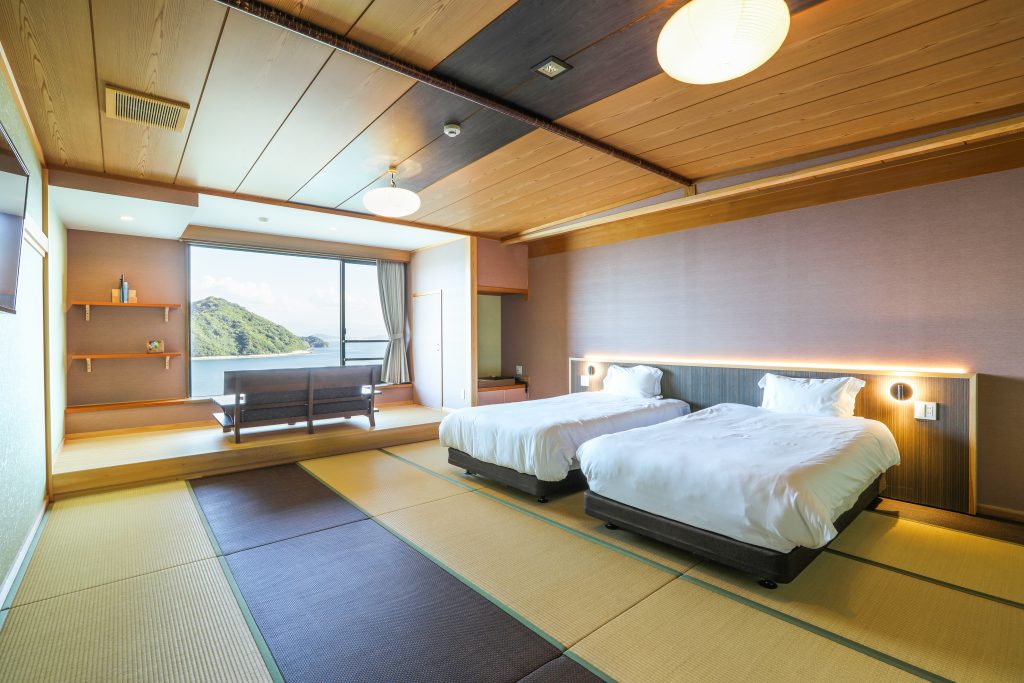 瀬戸内海の離島、広島県大崎上島にある多島美がご覧いただける露天風呂と魚介を中心とした食事が自慢の宿です。