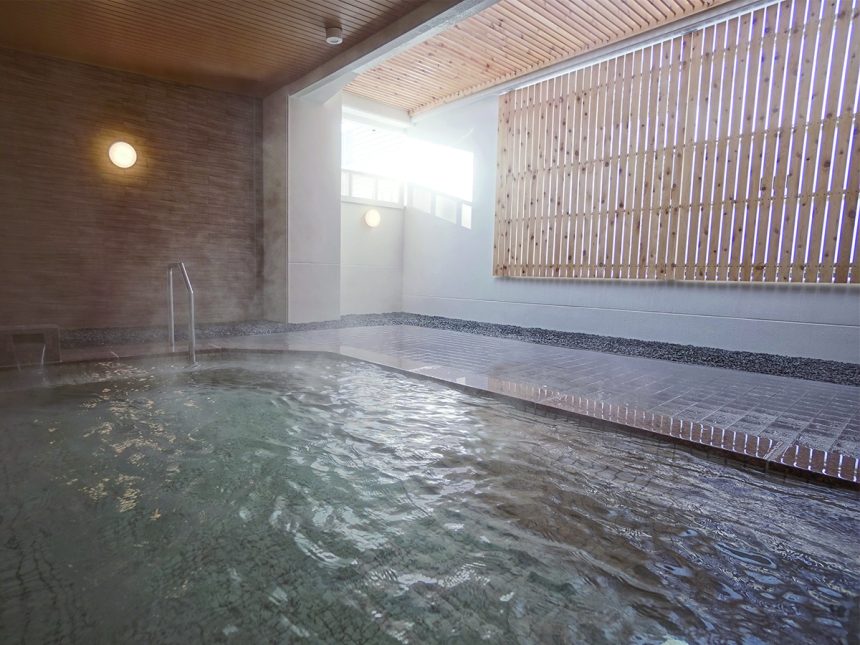 新函館北斗駅隣接のホテル内の温泉大浴場。塩化物泉の湯はよく温まり湯冷めしにくく、身体の心までぽかぽかに。