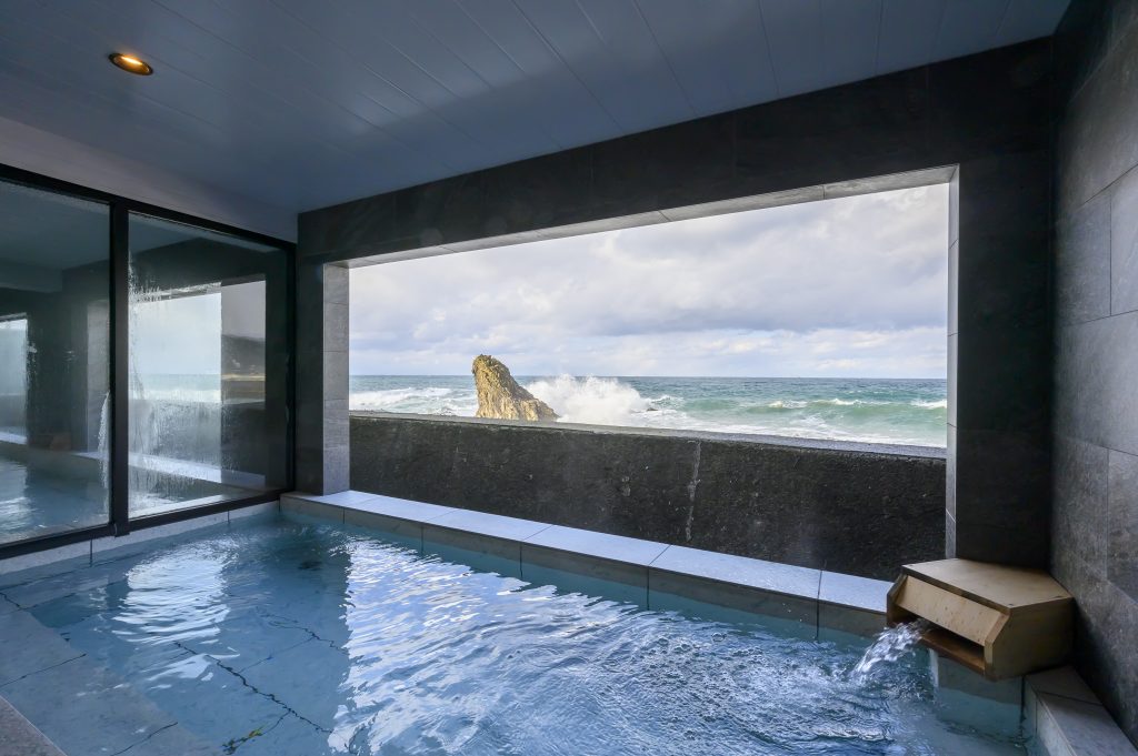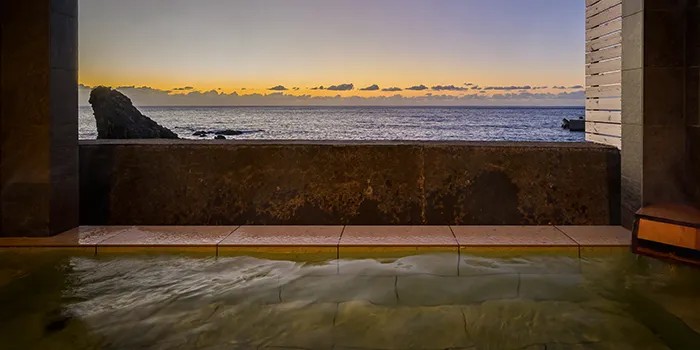 | おすすめポイント | 越前南部温泉は、肌をしっとりと潤す「美人の湯」としてご好評いただいております。男性浴場にはサウナ、女性浴場には露天風呂を完備しております。浴場から広がる日本海の景色は、四季折々で異なる表情を見せてくれます。夕日百選にも選ばれた越前の夕陽は、空も海も茜色に染める絶景です。刻々と変化する色のグラデーションを、のんびりと眺めながら、心地よい温泉で至福のひとときをお楽しみください。 |