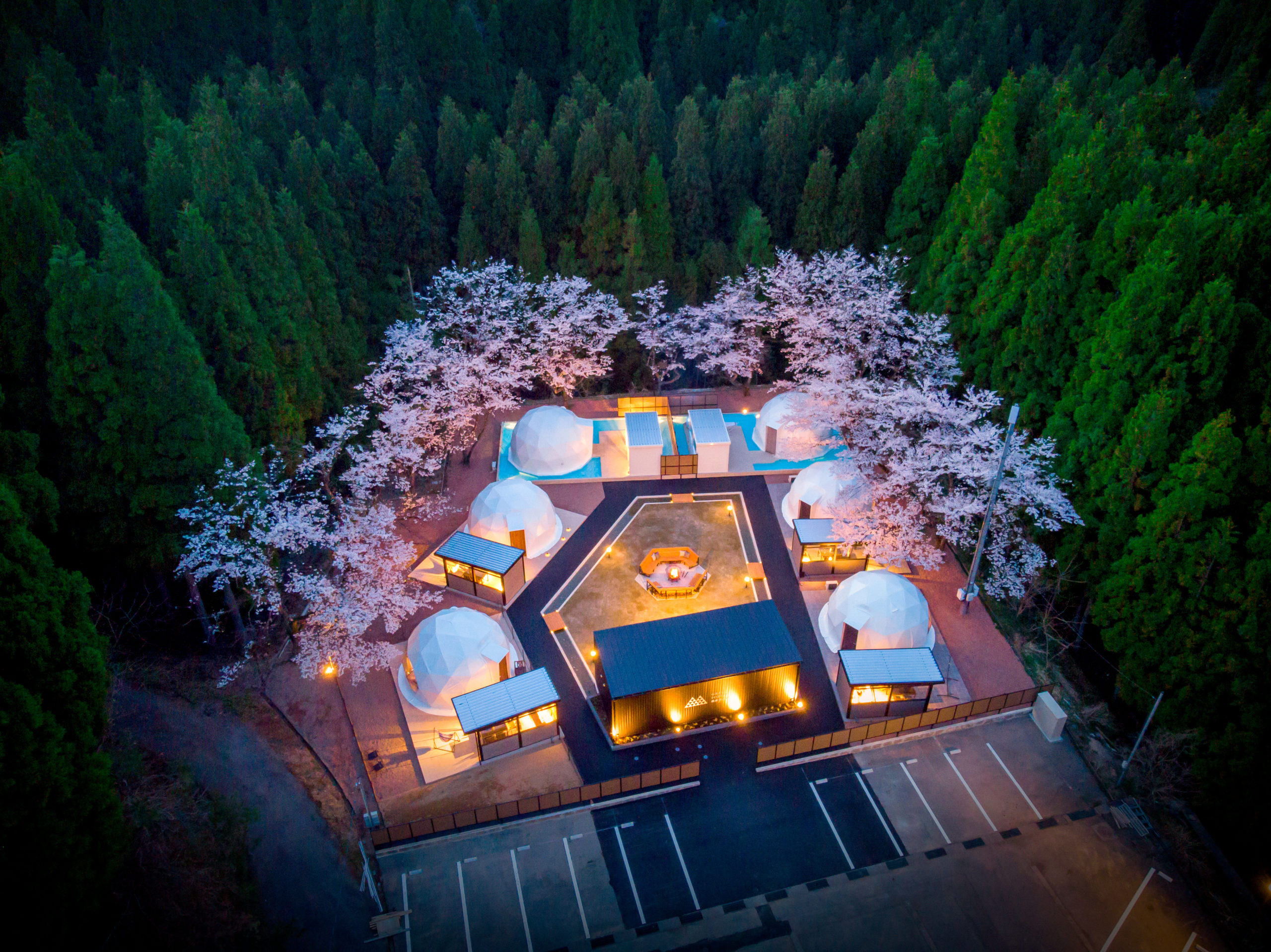 旧温泉宿をリノベーションして、広大な敷地にはグランピング施設を作り、古くは越前と呼ばれた福井県の美山で、新しい「リトリート空間」を作り上げました。