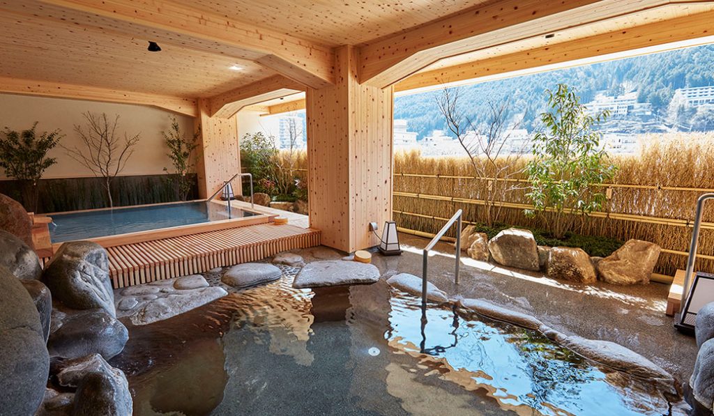館内で湯巡りができるほどの豊富な温泉施設と、旬の食材と地元の名産品を使用した創作和食で癒しと寛ぎのひと時を。