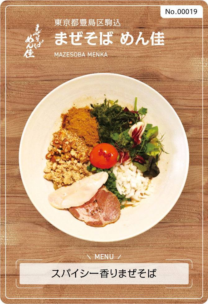 東京都豊島区のまぜそば めん佳はイタリアンの技法を取り込んだ新しいスタイルのまぜそば。味はもちろん香り見た目も楽しめる一杯をどうぞおあがり下さい。