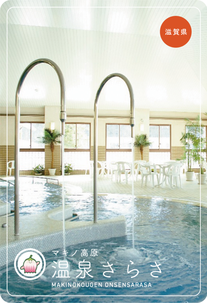 滋賀県高島市マキノ高原 温泉さらさ。マキノ高原の中心にあるこの温泉施設は寝湯、露天風呂を備えた男女別浴室と水着着用で入るバーデゾーンがあります。