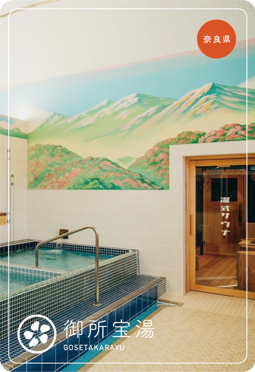 | おすすめポイント | 江戸時代の街並みが残る奈良県御所市にある銭湯。創業は1916年(大正5年)。2008年に廃業したが、2022年に復活を果たした。大正時代のつくりを残しつつ、現代風にリノベーションされた内装が見どころ。お風呂は、熱湯•ぬる湯•水風呂の他に、目玉であるフィンランド式サウナがあり、ロウリュも楽しめる。地元企業である(株)フェニックスの上質なシャンプー•リンス•ボディソープやコスメが無料で備え付けられているため、手ぶらでも立ち寄っても安心。 |