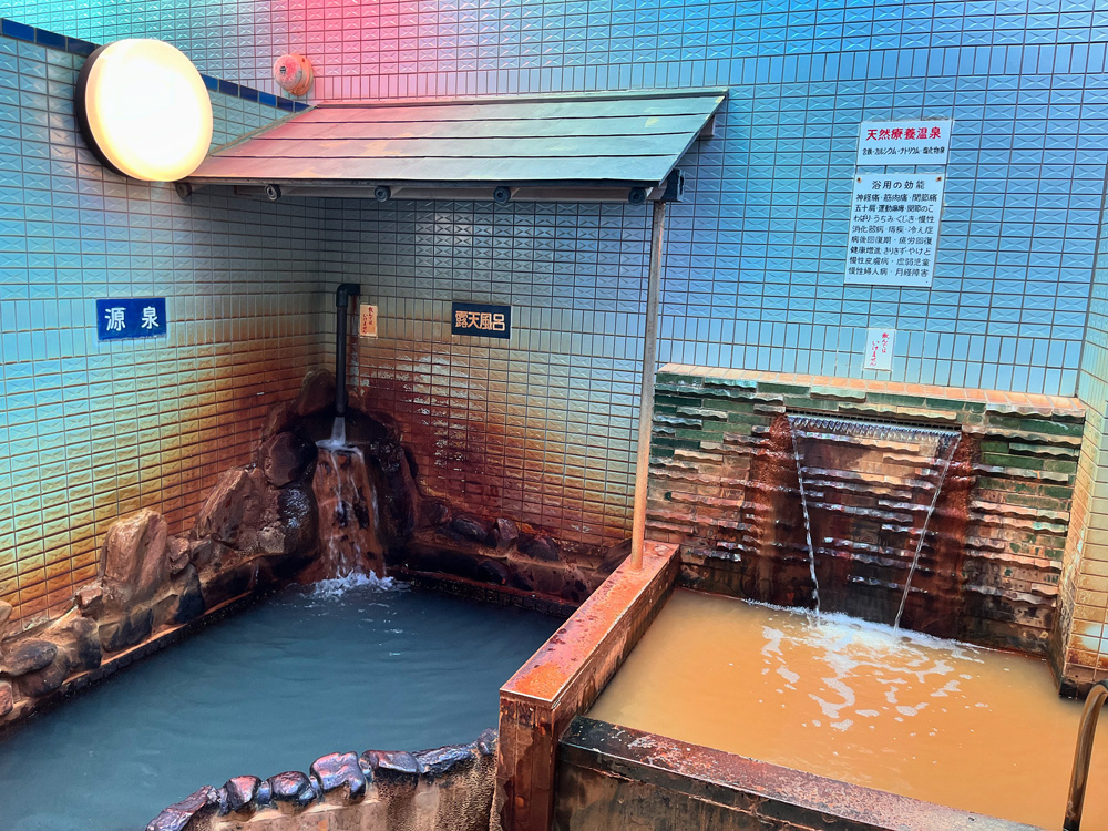 地元では「明石の有馬温泉」と親しまれ、白濁色の源泉掛け流し浴槽と赤褐色の加熱浴槽が大好評!
