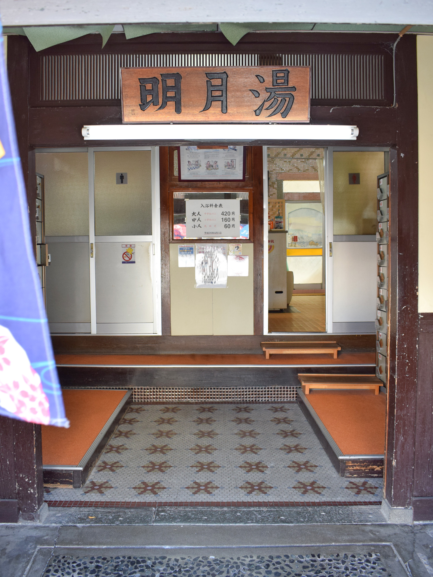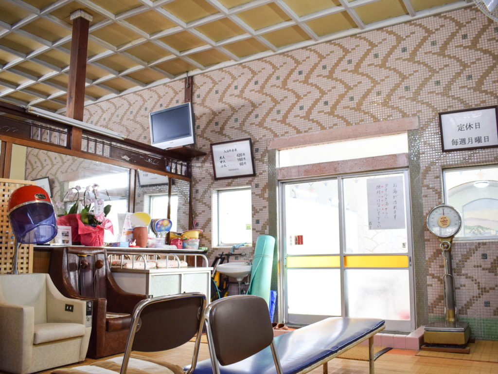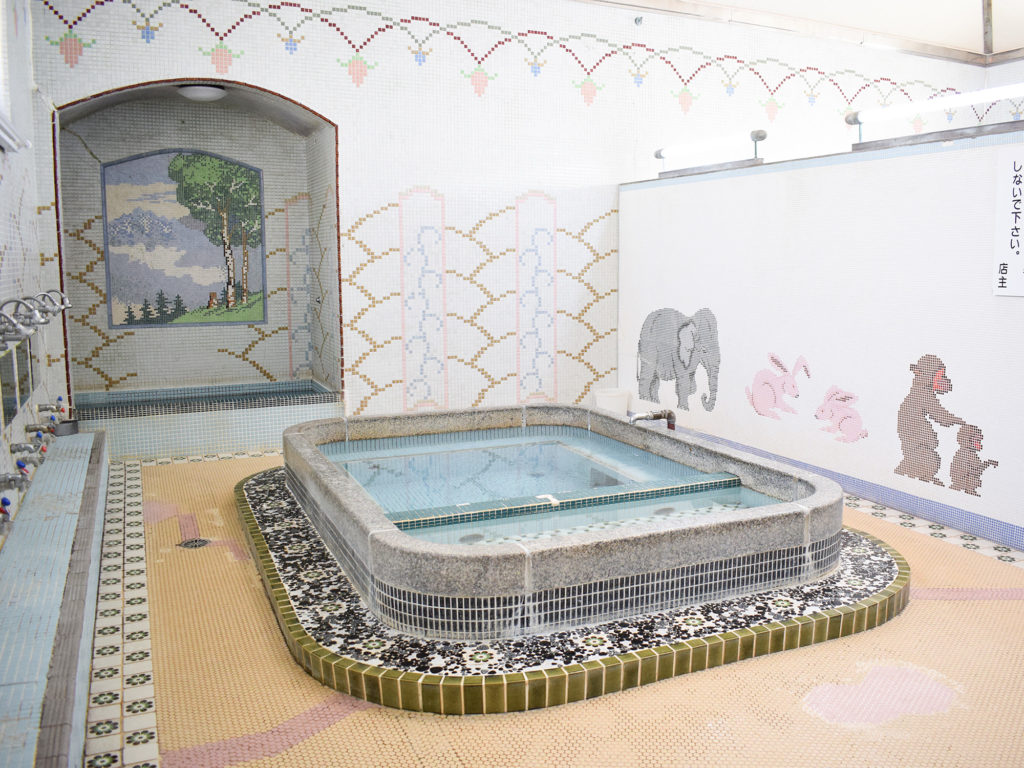 動物のモザイクタイルがかわいいレトロな銭湯です。