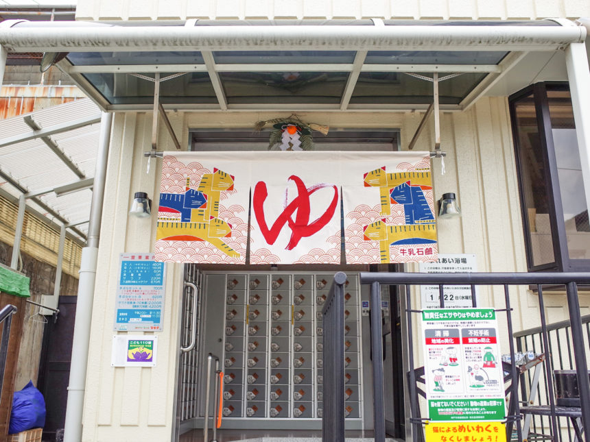 当湯の屋号は、阪神淡路大震災の再建で屋号を名倉湯から、オリックスブルーウェーブのウェーブをゆぇ〜ぶになぞり「ゆぇ~ぶ・なぐら」にしました。