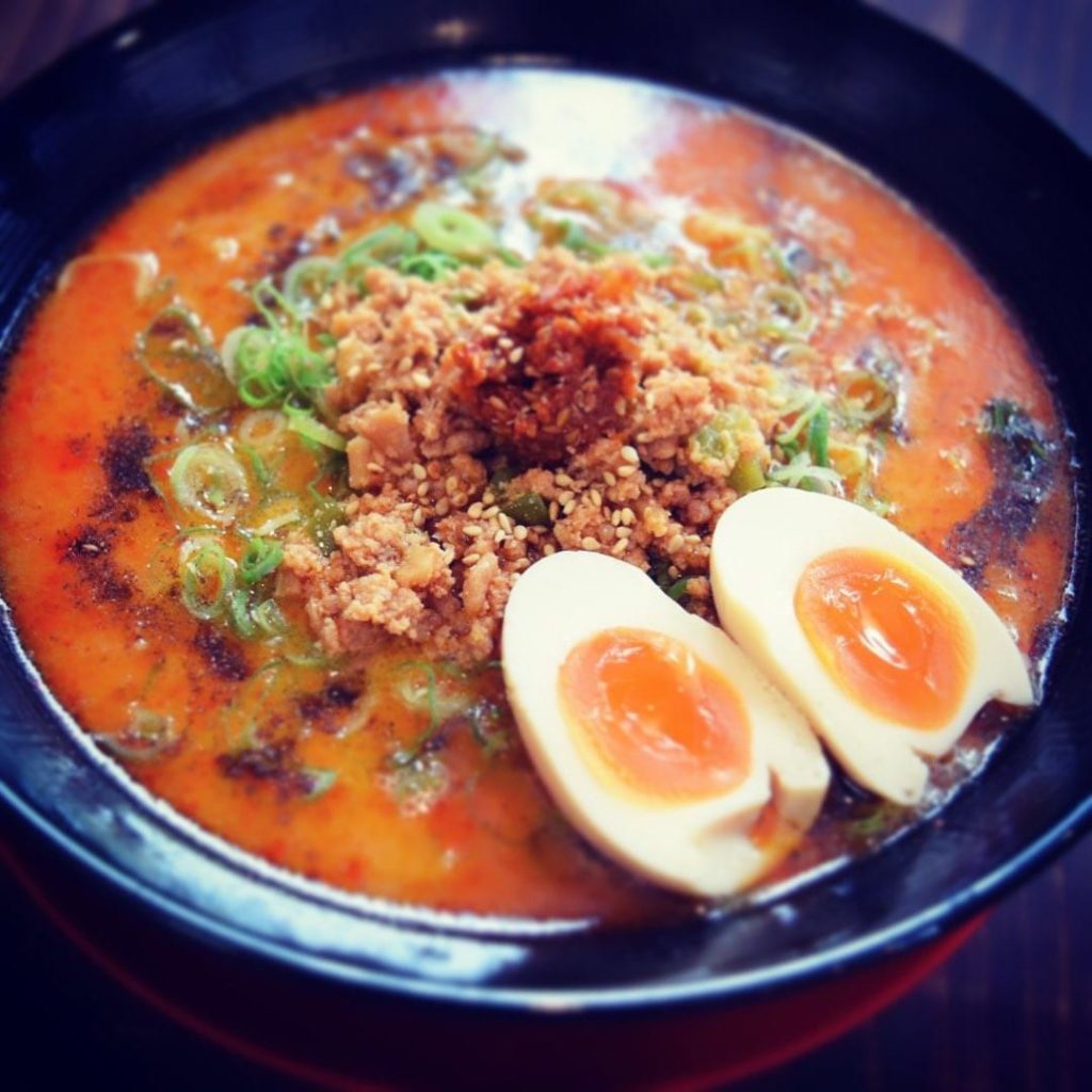 女性が飲み干すとんこつスープに辛さが苦手な人が美味しく食べれる担々麺。