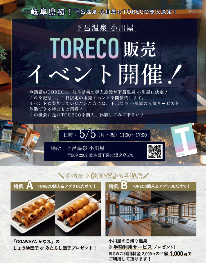 今話題のTORECO、岐阜県初の導入施設が下呂温泉 小川屋に決定!