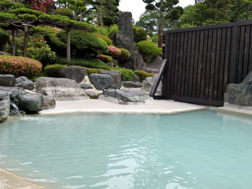 当館自慢の庭園露天風呂の広さは中ノ沢温泉随一。