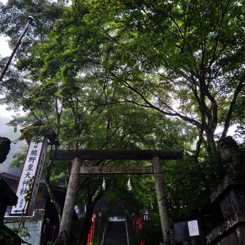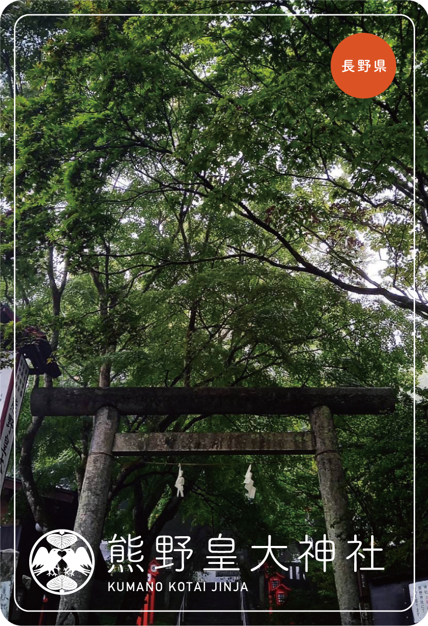長野県北佐久郡軽井沢町の熊野皇大神社。約1900年前に、日本武尊が碓氷峠にて、霧にまかれた際に八咫烏に導かれ無事に登頂できた。そのことを感謝し、熊野三社を祀ったといわれている。真田幸村はじめ、多くの武将が参拝されたことで有名。