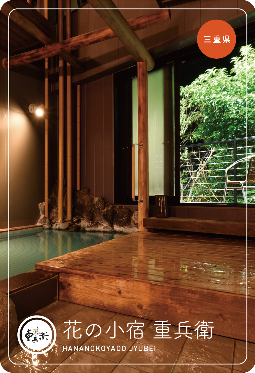 三重県鳥羽市の花の小宿 重兵衛。当宿の湯「社宮司温泉」は、清少納言ゆかりの「七栗の湯」で有名な「七栗」に源泉を持っています。